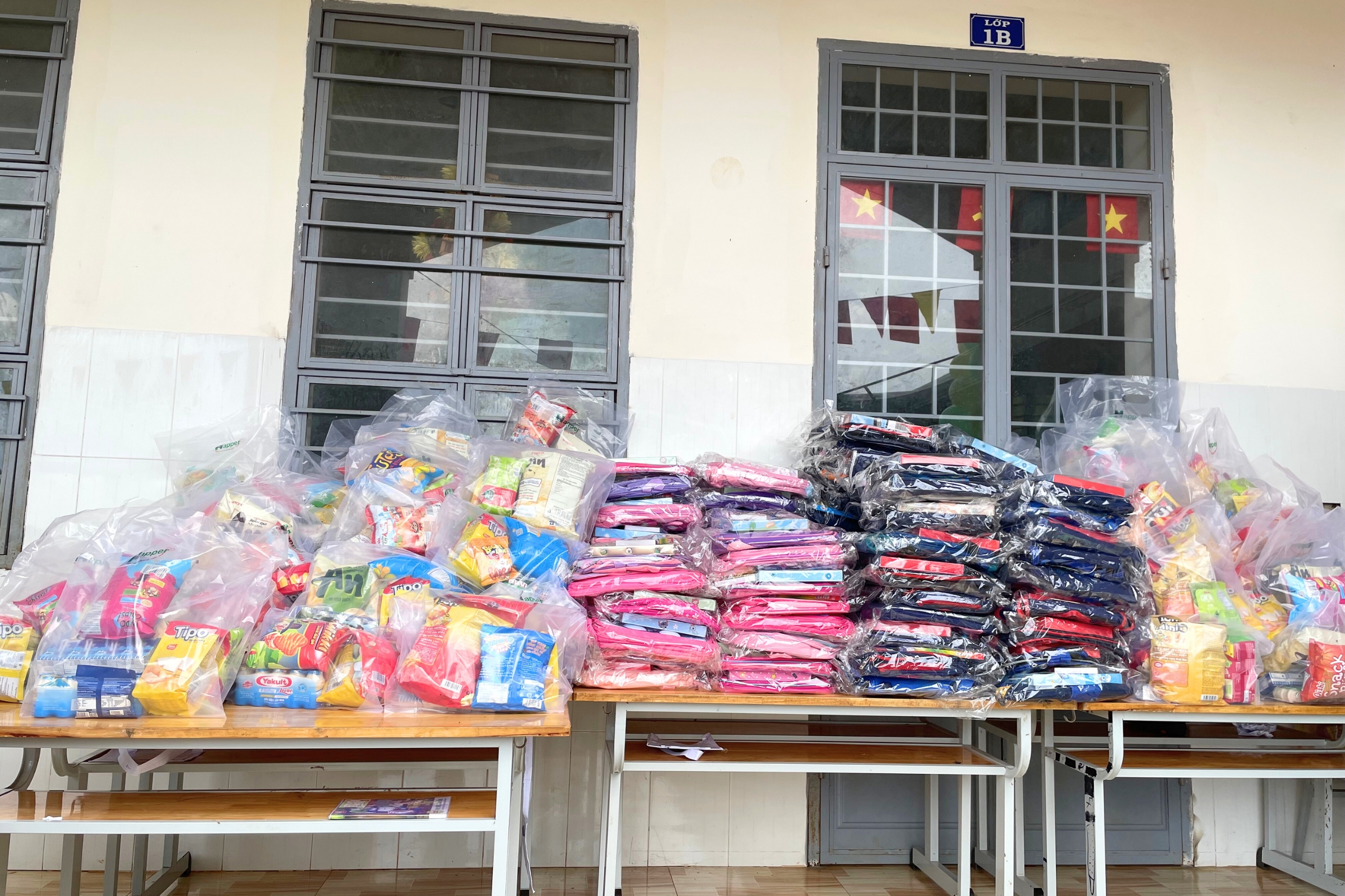 Bên cạnh đó, 75 phần quà gồm cặp sách, dụng cụ học tập và bánh kẹo cũng được trao tận tay các em học sinh tiểu học có hoàn cảnh khó khăn. Hoạt động tặng quà cho học sinh không chỉ mang lại niềm vui vật chất mà còn thể hiện sự quan tâm, sẻ chia, giúp các em cảm nhận được sự ấm áp của cộng đồng.