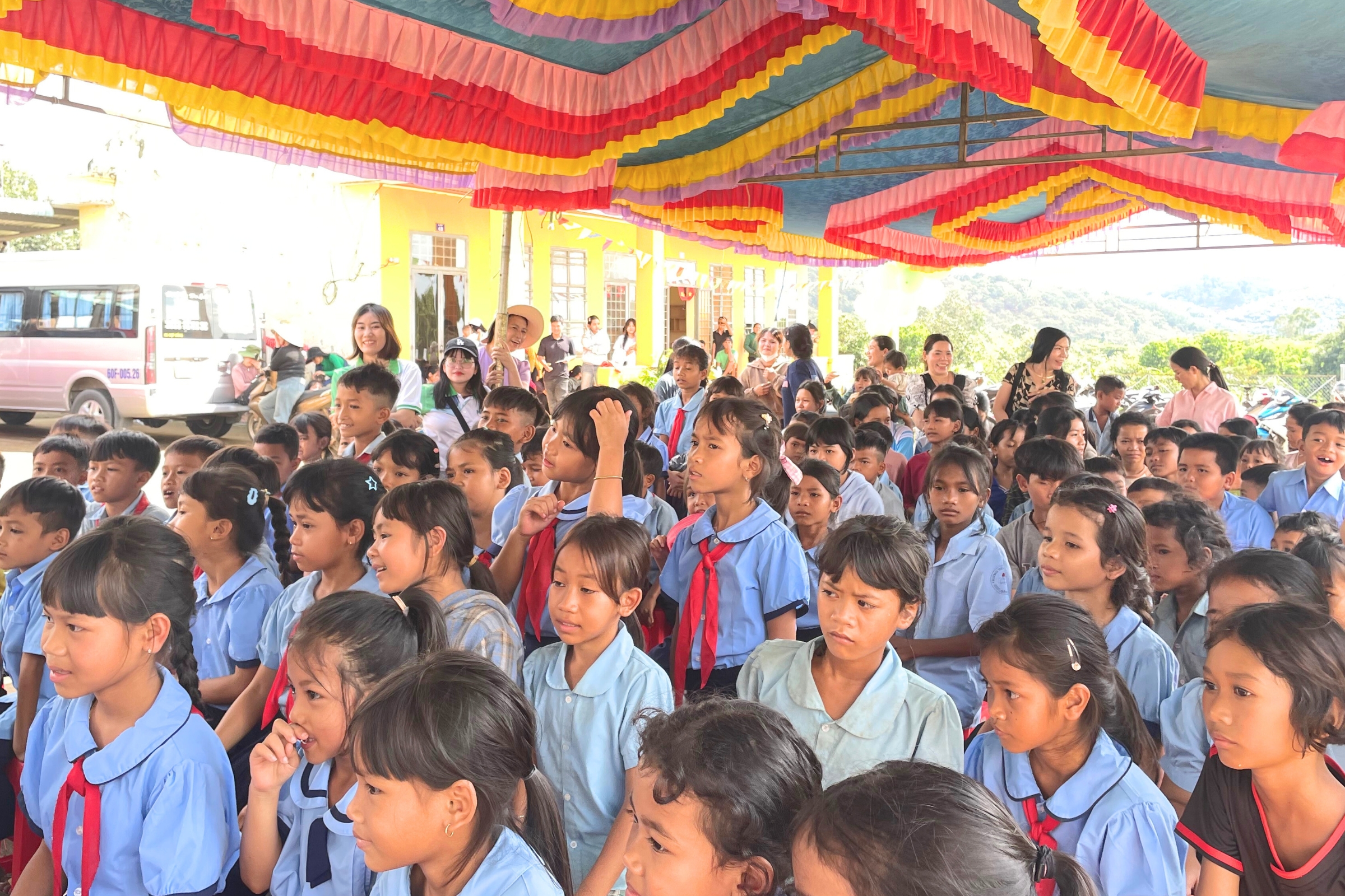 Năm nay, hành trình yêu thương của chúng tôi tiếp tục tại xã Bù Đăng, tỉnh Đồng Nai (tỉnh Bình Phước cũ) và điểm đến là Điểm trường Tiểu học Vườn Chuối (thôn Hưng Đăng) – một ngôi trường còn nhiều thiếu thốn nhưng luôn rộn rã tiếng cười và khát khao học hỏi của các em nhỏ.