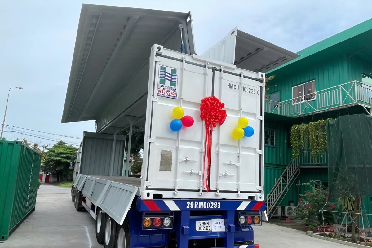 - Tạo không gian mở rộng: Container mở hông có thể kết hợp với container khác để tạo thành không gian lớn hơn hoặc không gian trưng bày cho các sự kiện hoặc triển lãm.”
